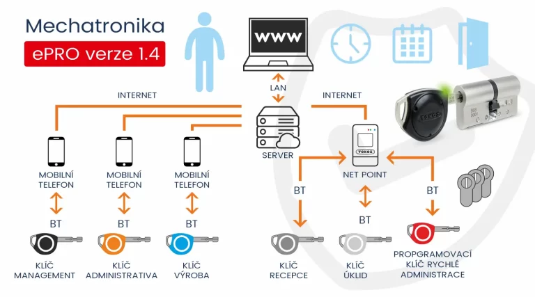 Generální klíč přináší revoluční řešení pro zabezpečení a správu přístupových práv. Uživatelé mohou ovládat přístup do různých prostor jediným klíčem. Základem systému je mechatronická cylindrická vložka ePRO, která kombinuje mechanické a elektronické prvky.